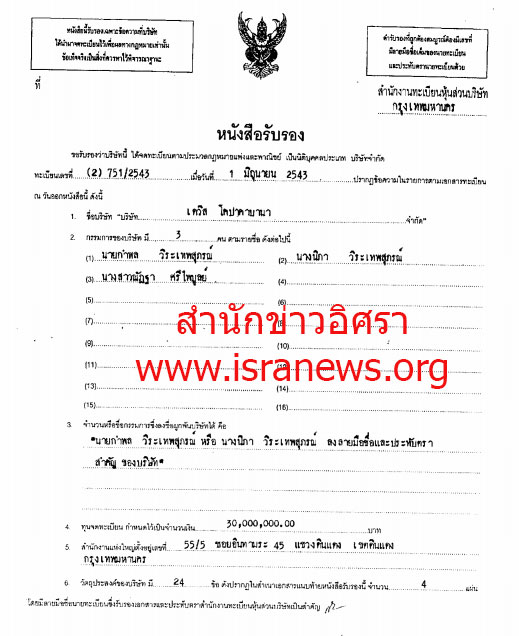 30 มิ.ย.2547 จดทะเบียนเปลี่ยนแปลงกรรมการ จากนายชูวิทย์ และ นายชุมสิน จิระนคร เป็น นายกำพล วิระเทพสุภรณ์ และ นางนิภา วิระเทพสุภรณ์ (ดูเอกสาร)