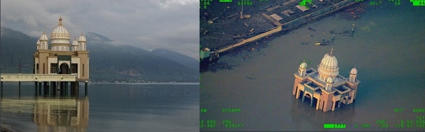 ขณะที่ผู้ใช้ทวิตเตอร์หลายคนต่างแชร์ภาพเปรียบเทียบสถานที่สำคัญหลายแห่ง ก่อนและหลังการเกิดสึนามิ เช่น สะพานYellow Bridge ที่อ่าวปาลู เกาะสุลาเวสี โรงพยาบาล สุเหร่า รวมถึงบ้านเรือนประชาชนจำนวนมากได้รับความเสียหาย