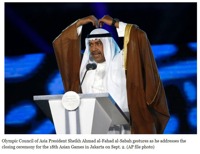 ข่าวใหญ่ที่ว่า คือ การก้าวลงจากตำแหน่งประธานสมาคมสหพันธ์โอลิมปิกแห่งชาติ หรือ ANOC เป็นการชั่วคราว เมื่อวันที่ 26 พ.ย.2561 ที่ผ่านมา ของ นายชีคอะหมัด อัล-ฟาฮัด อัล-อาเหม็ด อัล-ซาบะห์ ( Sheikh Ahmad Al-Fahad Al-Ahmed Al-Sabah ) หลังถูกสอบสวนพฤติกรรมการทุจริตในคณะกรรมการกีฬาโอลิมปิกนานาชาติ โดยทางการสวิตเซอร์แลนด์