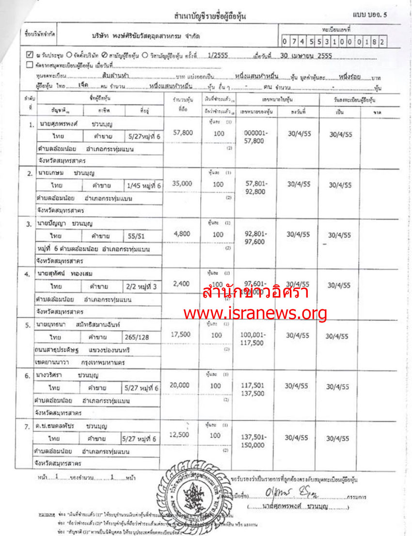 ตามไปดูชัดๆ หลักฐานบัญชีรายชื่อผู้ถือหุ้น 2 บ. ‘ปัญญา’ ส.อบจ.-อดีต ปธ.สภาสมุทรสาคร ชื่อหราก่อนไม่ยื่น ป.ป.ช. ศาลฎีกาฯฟัน จำคุก 1 เดือน ปรับ 4,000 บาท รอการลงโทษ 1 ปี