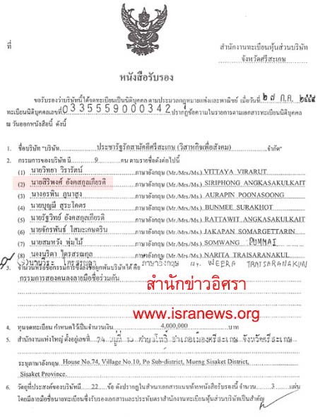 นายสิริพงศ์ อังคสกุลเกียรติ ส.ส.ศรีษะเกษ พรรคภูมิใจไทย (ภท.) โพรไฟล์ทางธุรกิจ นอกจากทำธุรกิจอสังหาริมทรัพย์ชื่อ หจก.สิริมงคลพร๊อพเพอร์ตี้ หจก. นันทยา 2004 และ ห้างหุ้นส่วนสามัญนิติบุคคล ศิริสามมิตร ตามที่สำนักข่าวอิศรา www.isranews.org รายงานไปแล้ว (อ่านประกอบ:บิ๊กธุรกิจอสังหาฯศรีสะเกษร้อยล.! โพรไฟล์ 'เสี่ยโต้ง' ส.ส.ภูมิใจไทย งดออกเสียงให้ ประยุทธ์)