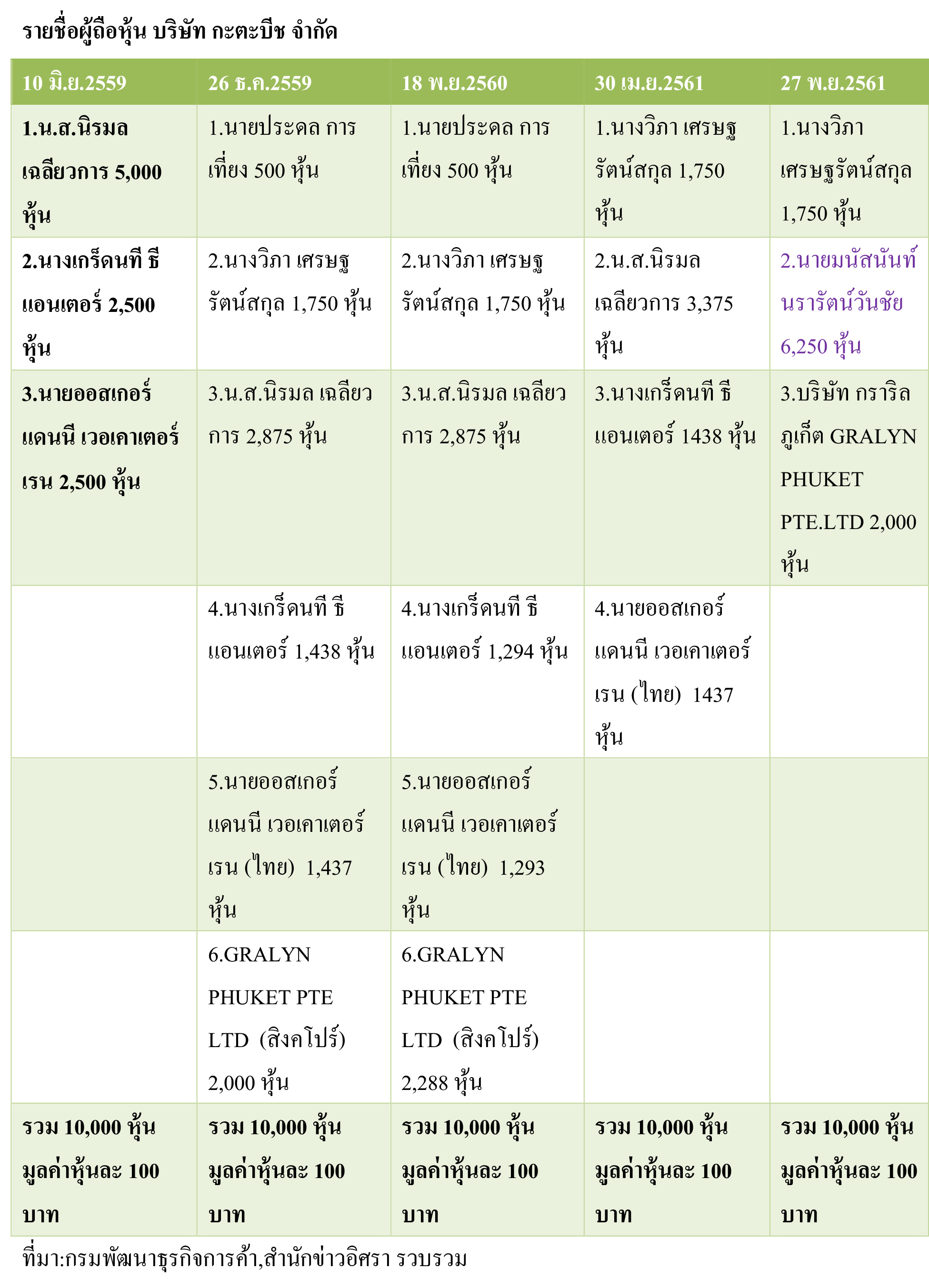 - เดอะ พีคฯ ภูเก็ต เปลี่ยนผู้ถือหุ้น 5 ครั้ง - บ.จดทะเบียนในสิงคโปร์ร่วมด้วย