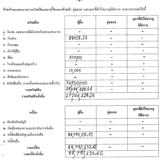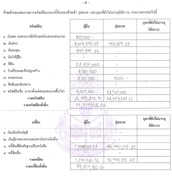 รวมทรัพย์สิน 2 คน 71,927,324.34 บาท หนี้สิน 89,821,180.66 บาท