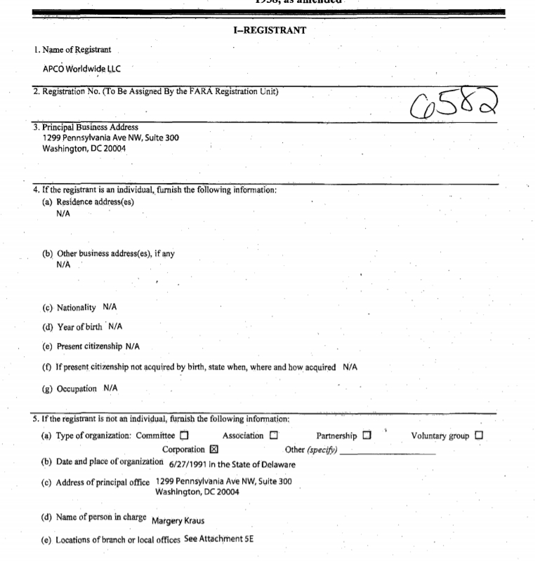 ทั้งนี้ ในเอกสารข้อมูลนิติบุคคลที่ทางบริษัทแอพโกฯ ส่งให้กับกระทรวงยุติธรรมสหรัฐอเมริกาเมื่อวันที่ 22 ส.ค. 2561 ระบุว่า บริษัทฯ จดทะเบียน เมื่อวันที่ 27 มิ.ย.2534 ที่รัฐเดลาแวร์ สหรัฐอเมริกา