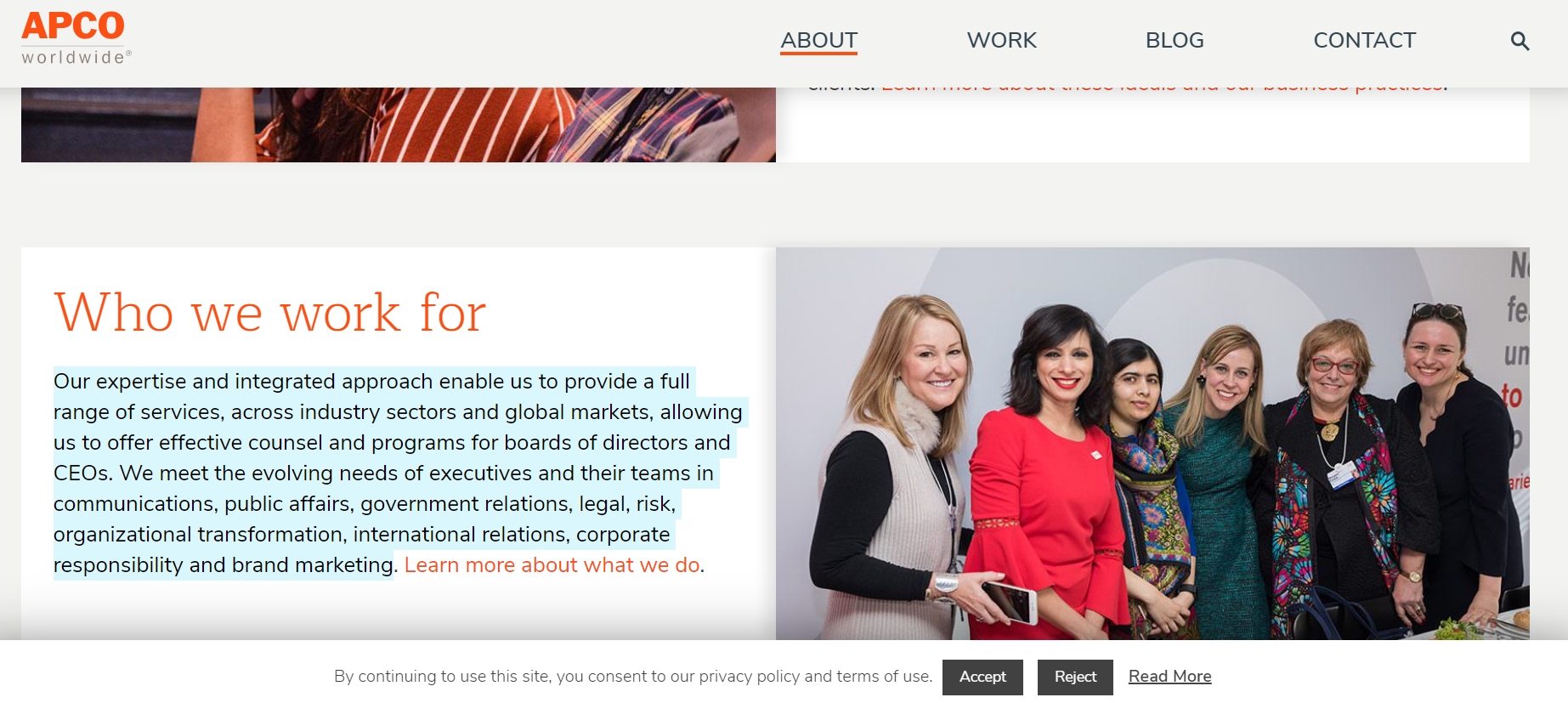 ล่าสุด สำนักข่าวอิศรา www.isranews.org สืบค้นข้อมูล บริษัท แอพโก เวิลด์ไวด์ (APCO Worldwide LLC) จากเว็บไซต์ https://apcoworldwide.com/about/ พบว่า บริษัทฯ ระบุข้อมูลการทำธุรกิจว่า เป็นบริษัทที่มีประสบการณ์และมีความสามารถในการให้บริการที่มีความหลากหลายแก่ลูกค้า ซึ่งเป็นนักธุรกิจชั้นนำระดับโลก ในการทำหน้าที่ของบริษัทฯ จะมีทีมงานคอยให้คำปรึกษาที่มีประสิทธิภาพ บรรลุความต้องการของลูกค้าในภาคธุรกิจทั้งในด้านการสื่อสาร การประเมินความเสี่ยง การประชาสัมพันธ์ การเสริมสร้างสัมพันธ์กับรัฐบาล ด้านกฎหมาย ควาามสัมพันธ์ระหว่างประเทศ ธรรมภิบาลของบริษัท และในด้านการเสริมสร้างและประชาสัมพันธ์แบรนด์ของบริษัทลูกค้า"