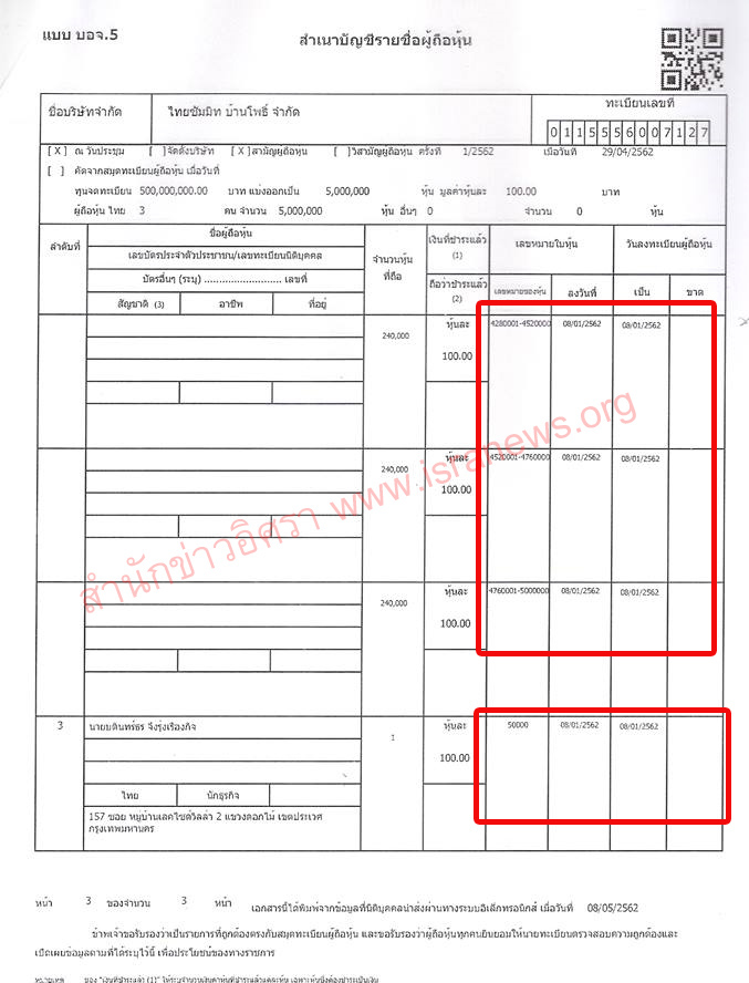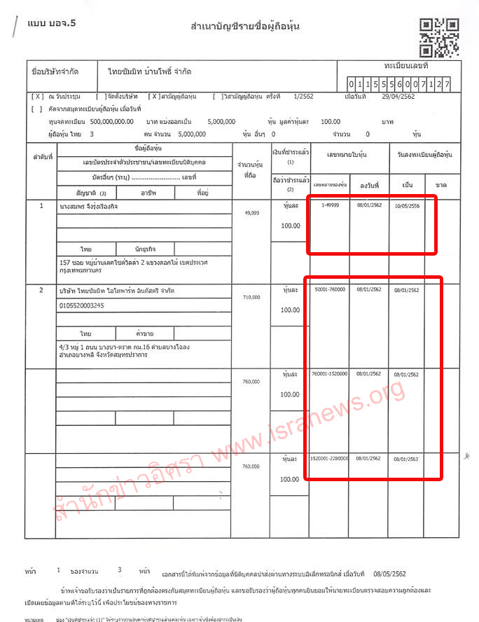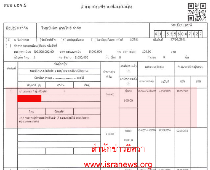 ‘ธนาธร’โอนหุ้น 2 บ.‘กิจการสื่อ’250 ล. ให้เครือไทยซัมมิท ระบุวันลงทะเบียน 8 ม.ค.62