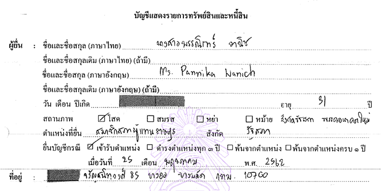 ทั้งหมดคือสถานะเกี่ยวกับทรัพย์สินของ น.ส.พรรณิการ์ หลังบริจาคเงินให้พรรค 1 ล้านบาทเมื่อปลายปี 2561 เห็นได้ว่า ไม่มีเงินสด มีเงินฝากเพียง 9 หมื่นบาทเศษ