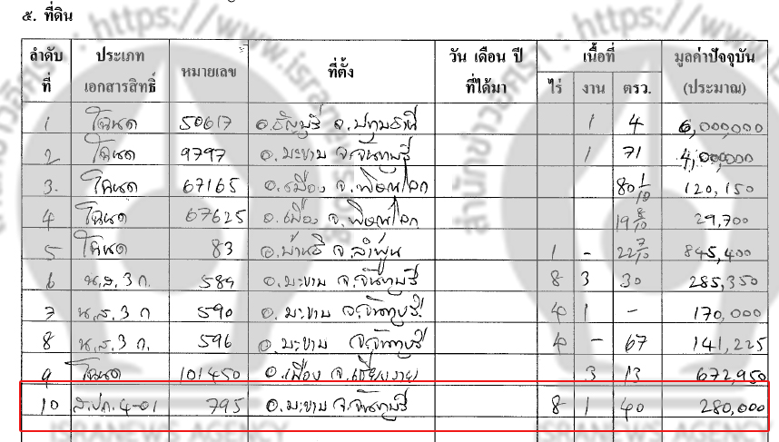 ทั้งสองคนมีที่ดิน 10 แปลง เนื้อที่ 28-1-46 ไร่ มูลค่า รวม 12,568,775 บาท