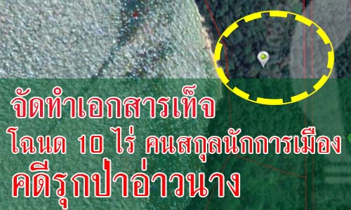 - โฉนด 10 ไร่ คนสกุลนักการเมือง คดีรุกป่าอ่าวนาง จัดทำเอกสารเท็จ