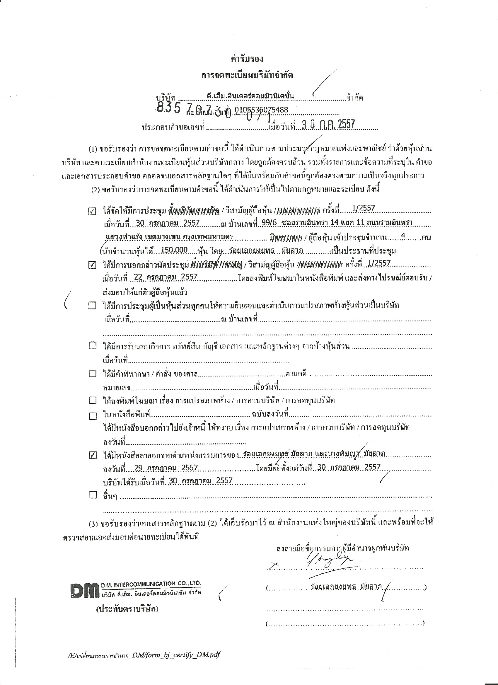 ขณะที่ บริษัท ดี.เอ็ม.อินเตอร์คอมมิวนิเคชั่น จำกัด มีข้อมูลดังนี้