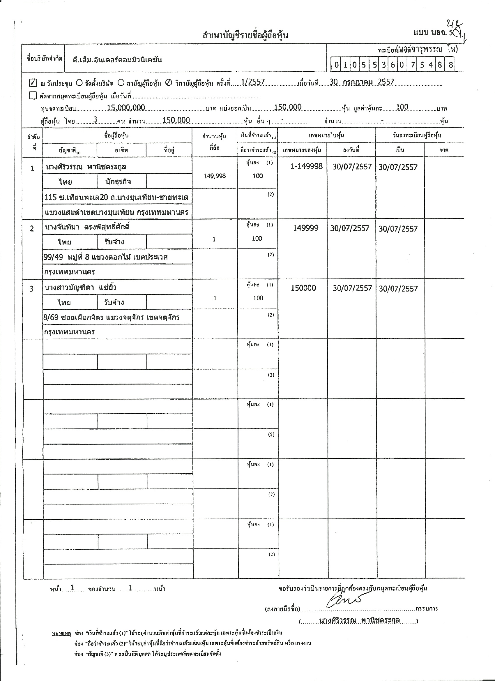 นายธีระเดช เอมสุวรรณ 200 หุ้น รวม 150,000 หุ้น