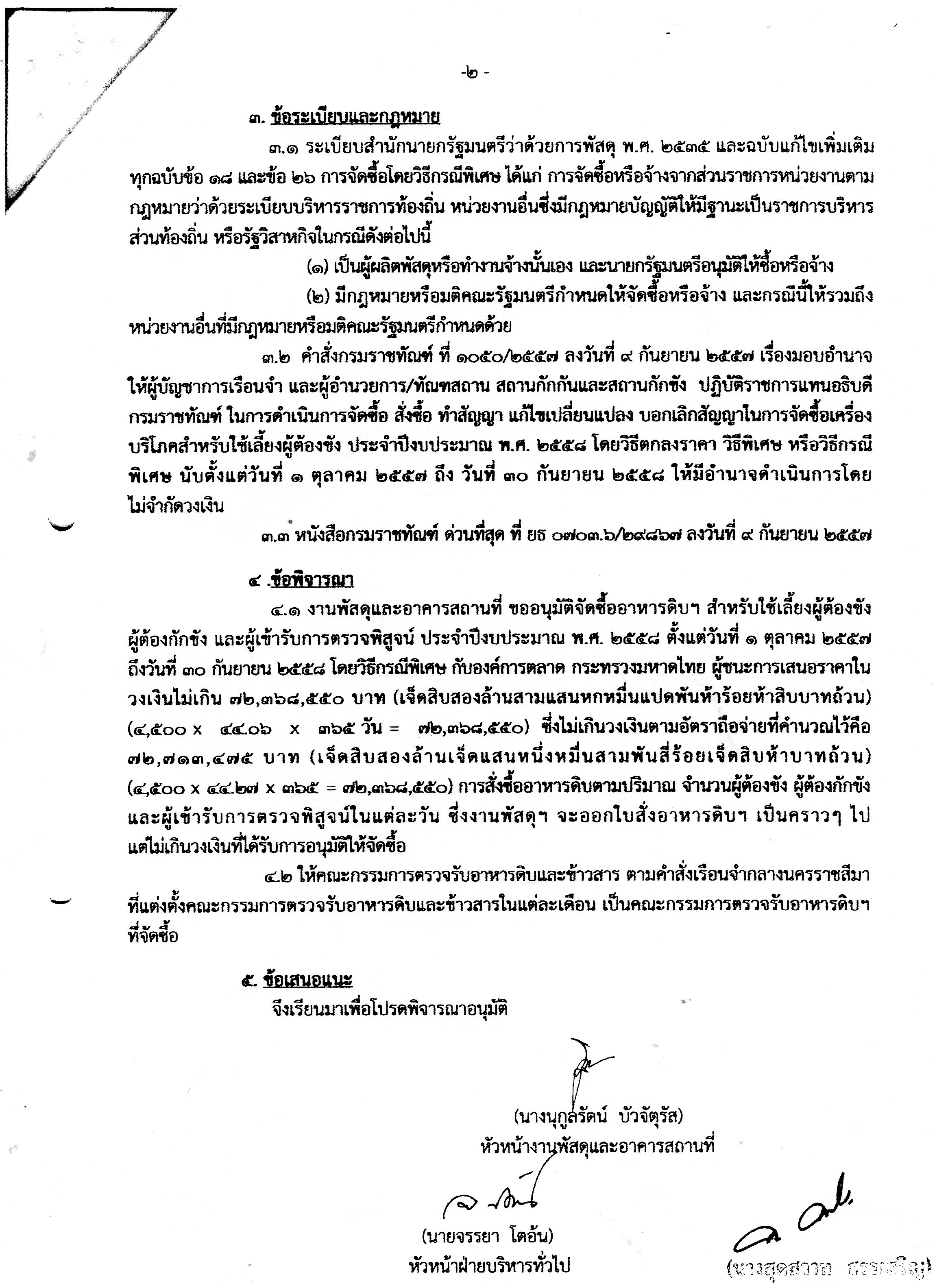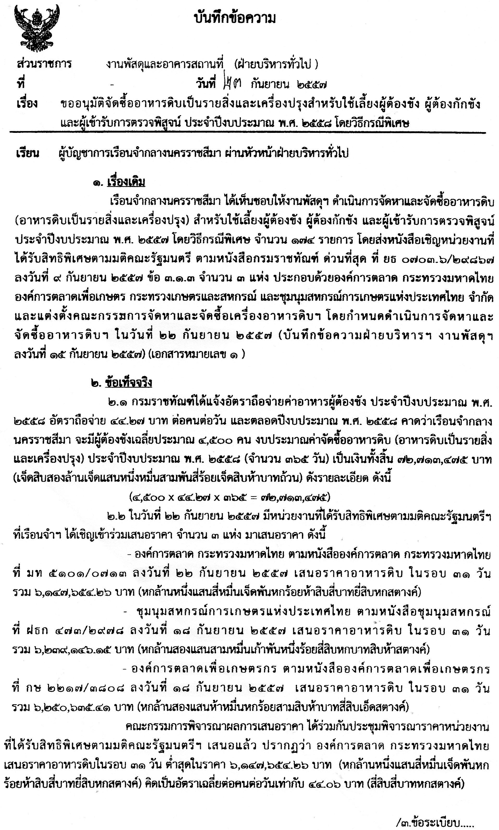 ขอยกกรณีการจัดซื้ออาหารดิบของเรือนจำกลางนครราชสีมา วงเงิน 72.7 ล้านบาทในปีงบประมาณ 2558 มาเสนอดังนี้