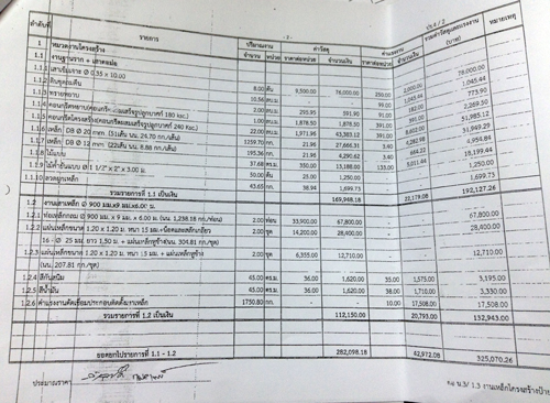 ล่าสุด สำนักข่าวอิศรา www.isranews.org นำเอกสารรายการประมาณค่าก่อสร้างที่ดำเนินการโดย กองช่าง อบจ.ชัยนาท มาเสนอ พบว่าคิดคำนวณราคาได้ดังนี้