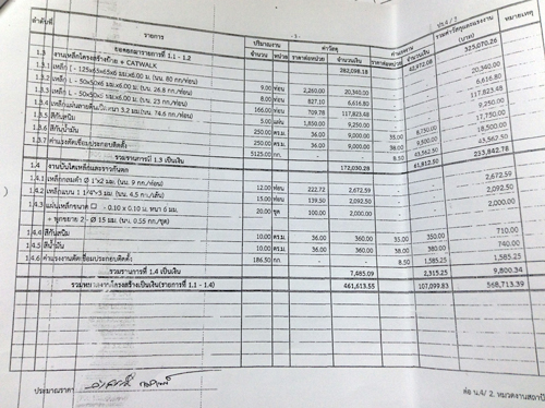 งานโครงสร้างป้าย + CATWALK แบ่งเป็นค่าวัสดุ 172,030.28 บาท ค่าแรงงาน 61,812.50 บาท รวม 233,842.78 บาท