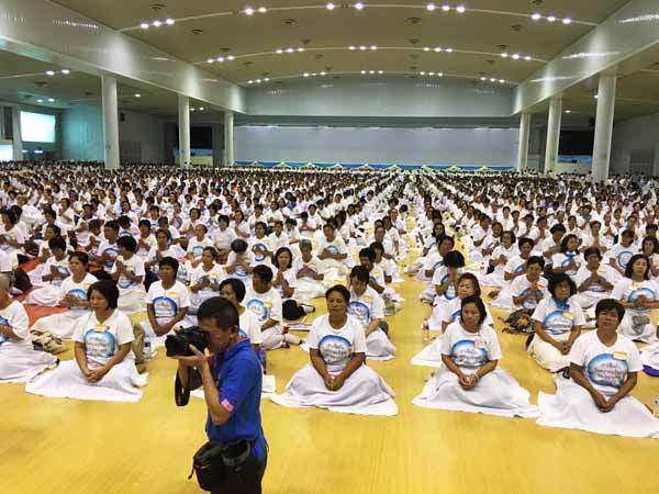 - ผู้ร่วมปฏิบัติธรรมตามโครงการธุดงค์ธรรมชัยส่งเสริมหมู่บ้านรักษาศีล 5 ซึ่งเริ่มตั้งแต่วันที่ 25 พฤษภาคม สิ้นสุดวันที่ 15 มิถุนายน แต่จนถึงขณะนี้ก็ยังคงปฏิบัติธรรม นั่งสมาธิ และฟังพระเทศน์ที่ห้องแก้วสารพัดนึก สภาธรรมกายสากล ประมาณ 2,000 คน