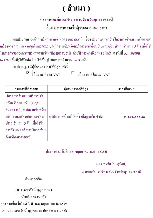 ล่าสุดพบว่า หญิงสาว อีกคนชื่อ น.ส.วนิดา สุดแสง ผู้ถือหุ้นใหญ่ บริษัท เบสต์ มาร์เก็ตติ้ง เอ็ดดูเคชั่น จำกัด ซึ่งบริษัทดังกล่าวเป็นคู่สัญญาจ้างเหมาบริหารเช่าเครื่องจักรกลหนัก(รถขุดตีนตะขาบ)กับ อบจ.อุบลฯ วงเงิน 3,186,000 บาท เมื่อวันที่ 30 พ.ค.2557 (ดูเอกสาร)