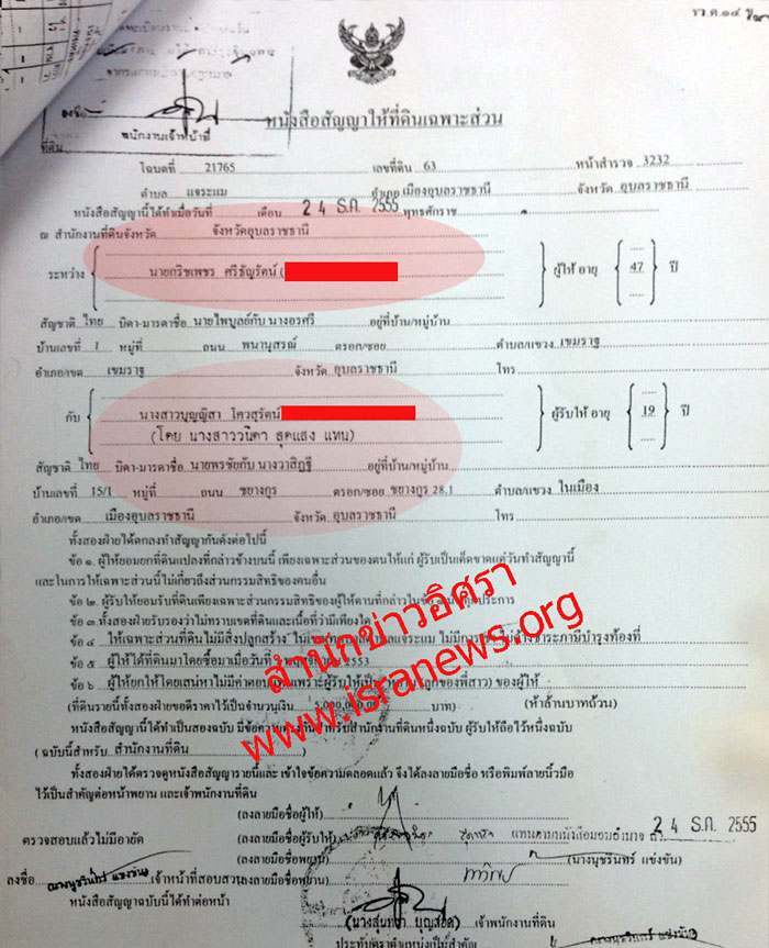 พบอีกคน! หญิงสาว‘ผู้แทน’รับมอบอำนาจ ‘บุญญิสา โควสุรัตน์’ ลูกสาวอดีตนายก โอนที่ดินจากเครือญาติ ชื่อโผล่ ‘ถือหุ้นใหญ่’ บ.คู่สัญญารับเหมาถมดิน อบจ.อุบลฯ - เครือข่าย 2 แห่ง