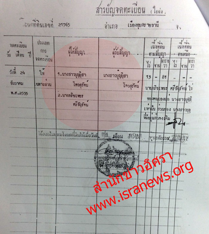 ‘หุ้นใหญ่’บ.เจ้าของโฉนด 29 แปลง จ.อุบลฯ ที่แท้‘ผู้แทน’อดีตนายกโอนที่ให้ลูกสาว