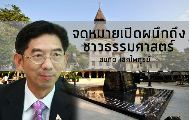 จดหมายเปิดผนึกถึงชาวธรรมศาสตร์ โดย ศาสตราจารย์ ดร.สมคิด เลิศไพฑูรย์ อธิการบดีมหาวิทยาลัยธรรมศาสตร์ กรณีกระบวนการสรรหาอธิการบดีใหม่