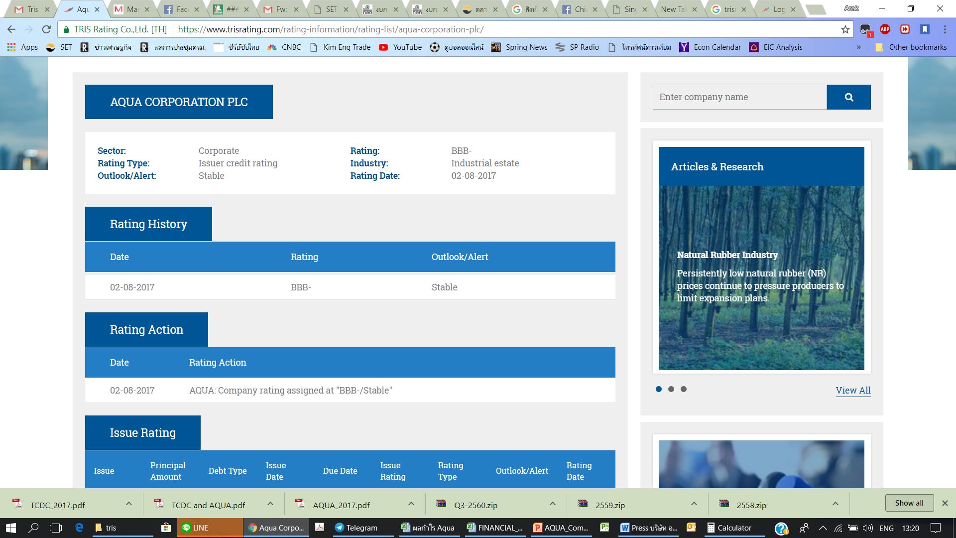 เมื่อวันที่ 2 สิงหาคม 2560 บริษัทฯได้รับการจัดอันดับความน่าเชื่อถือจากบริษัท ทริสเรทติ้ง จำกัด ที่ระดับ “BBB-“ ส่วนแนวโน้มอันดับเครดิต ได้กำหนดที่ระดับ “Stable” หรือ “คงที่”