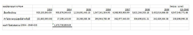 ที่ผ่านมาบริษัทฯได้มีความพยายามที่จะสร้างผลประกอบการที่ดีให้แก่บริษัทฯผ่านการลงทุนในธุรกิจต่างๆ ซึ่งมีการเจริญเติบโตและขยายกิจการมาตลอด โดยบริษัทฯเริ่มมีผลกำไรจากการดำเนินงานมาตั้งแต่ปี 2554 จำนวน 17.209 ล้านบาท ในขณะที่มีมูลค่าสินทรัพย์พียง 955.876 ล้านบาท จนมาถึงในไตรมาส 3 ของปี 2560 บริษัทฯมีกำไรรวม 3 ไตรมาส 230.899 ล้านบาท และมีมูลค่าสินทรัพย์สูงขึ้นเป็น 6,547.541 ล้านบาท หรือมากกว่า 6 เท่าตัว รวมผลกำไรสะสมในช่วงที่ผ่านมาสูงถึง 1,472.731 ล้านบาท ดังแสดงให้เห็นจากตารางสรุป ดังนี้