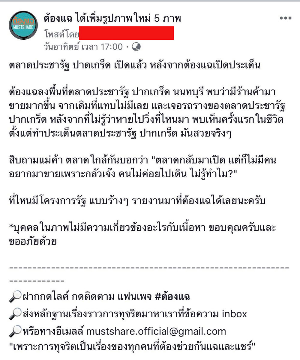 สำนักข่าวอิศรา รายงานว่า โครงการตลาดประชารัฐ อ.ปากเกร็ด จ.นนทบุรี เคยปรากฎข้อมูลใน เพจต้องแฉ ว่า มีผู้ร้องเรียนว่า ใช้เงินไปจำนวนกว่า 28 ล้านบาท ในการก่อสร้างปรับปรุงตลาด แต่หลังจากเปิดให้บริการมาตั้งแต่เดือนต.ค.2560 มีลูกค้าเข้ามาใช้บริการน้อยมาก ร่วมถึงจำนวนพ่อค้าแม่ค้าด้วย จนถูกวิพากษ์วิจารณ์ว่ามีสภาพคล้ายตลาดร้าง ซึ่งหลังจากนั้นหน่วยงานที่เกี่ยวข้องก็รีบลงมาแก้ไขปัญหาทันที