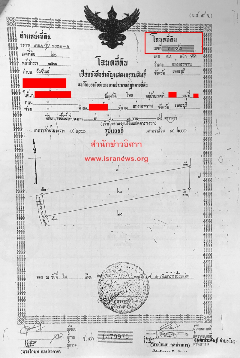 "...จากการตรวจสอบโฉนดที่ดินเลขที่ 3193 ซึ่งถูกใช้เป็นหลักประกันเงินกู้พิเศษของอดีตผู้บริหารสหกรณ์ฯ รายหนึ่ง กับ สอ.สรฟ. สัญญาลงนามเมื่อวันที่ 3 พ.ค. 2556 จำนวน 15,000,000 บาท พบว่า เป็นที่ดินดังกล่าวตั้งอยู่ที่อำเภอแก่งกระจาน จังหวัดเพชรบุรี เนื้อที่ 7 ไร่ 3 งาน 48 ตารางวา เมื่อตรวจสอบข้อมูลสารบัญจดทะเบียนด้านหลังโฉนดเลขที่ 3193 ดังกล่าว พบว่า เจ้าของเดิมคือ นาย ส.และนาง ย. (ชื่อย่อ) ก่อนมีการขายต่อให้กับอดีตผู้บริหารสหกรณ์รายนี้..."