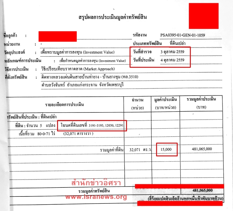 เท่ากับว่าราคาประเมินของบริษัทเอกชน สูงกว่าราคาประเมินของสำนักงานที่ดินจังหวัดเพชรบุรี ถึง 75 เท่า (ดูหลักฐานประกอบ)
