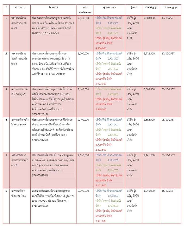 @ ตารางแสดงผลการประกวดราคาขายรถบรรทุกให้กับหน่วยงานท้องถิ่นของ บริษัท รุ่งเจริญ อีควิปเมนท์ แอนด์ทรัค จำกัด
