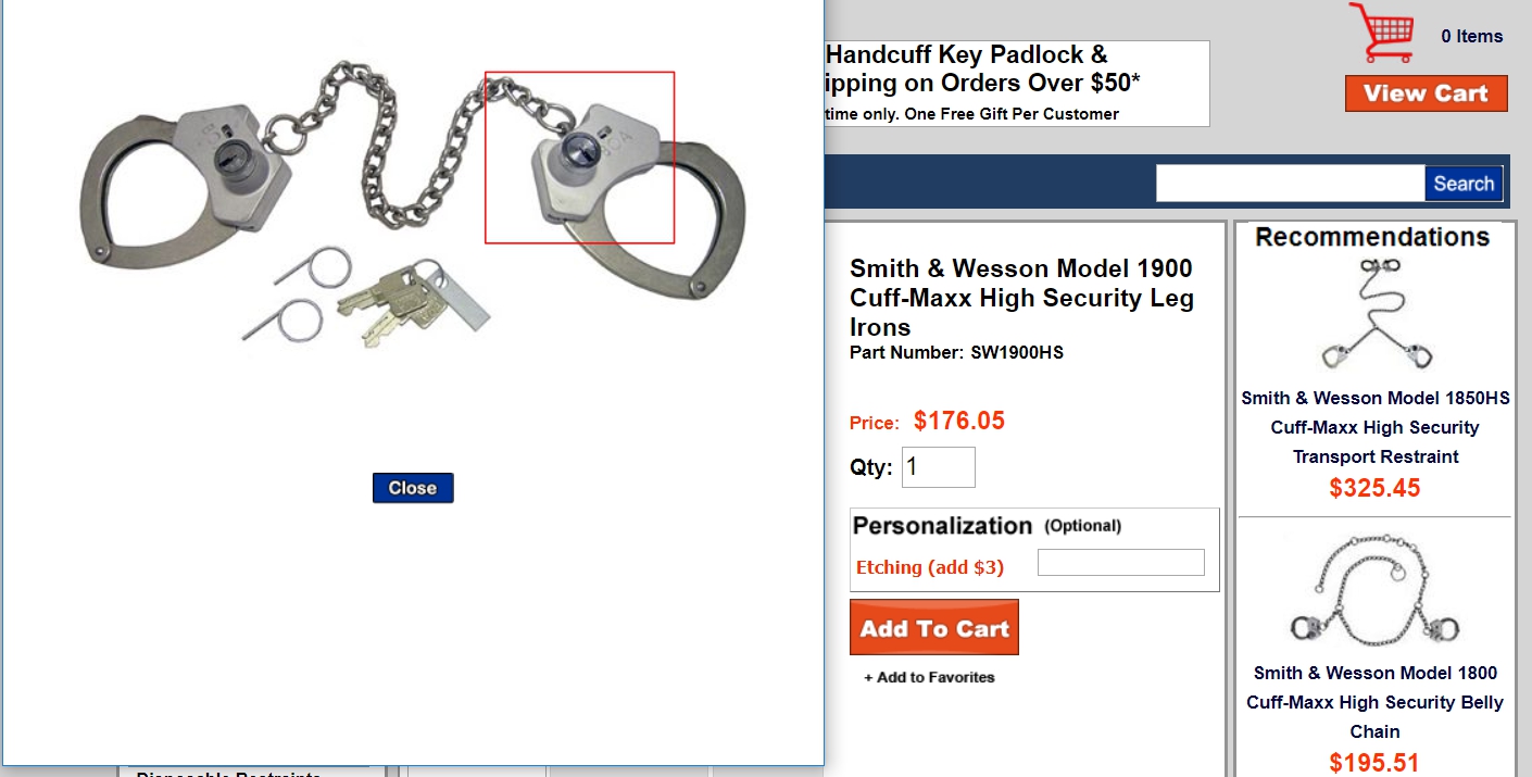 "...สำนักข่าวอิศราได้ตรวจสอบบนเว็บไซต์ handcuffwarehouse.com เพื่อค้นหาเครื่องพันธนาการเท้าความมั่นคงสูง โดยใช้คำค้นหาภาษาอังกฤษว่า High Security Leg Irons พบผลิตภัณฑ์ของบริษัท Smith & Wesson อยู่ 1 ผลิตภัณฑ์ คือ รุ่น Smith & Wesson Model 1900 Cuff-Maxx High Security Leg Irons สนนราคาอยู่ที่คู่ละ 176.05 ดอลลาร์สหรัฐ (5,789.93 บาท) โดยมีสัญลักษณ์ BOA อยู่ที่ตัวกุญแจเท้า..."