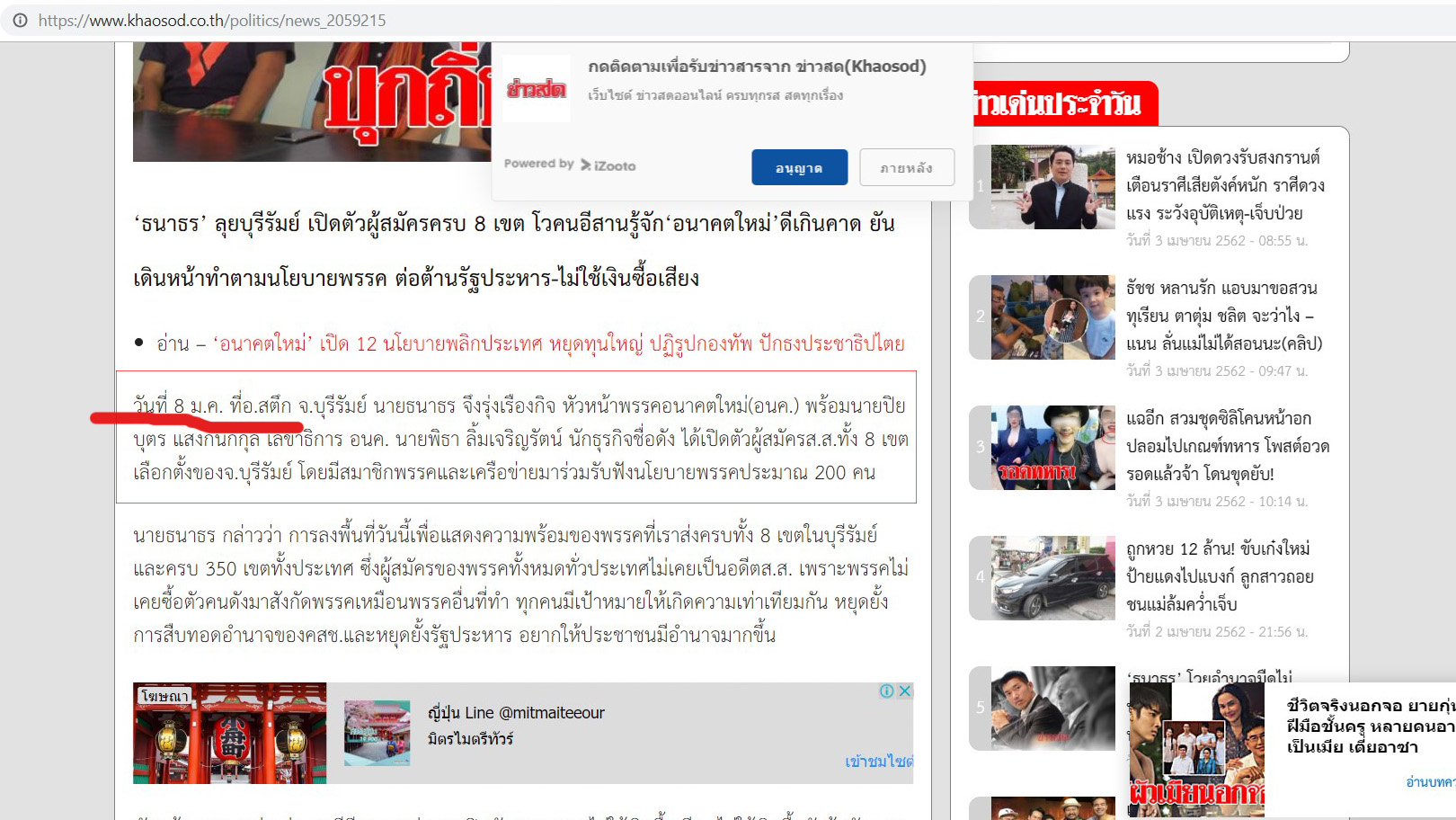 - 8 ม.ค.62 ‘ธนาธร’ช่วยผู้สมัครหาเสียง จ.บุรีรัมย์ วันเดียวโอนหุ้นให้‘สมพร’-เจ้าตัวยันอยู่กทม.