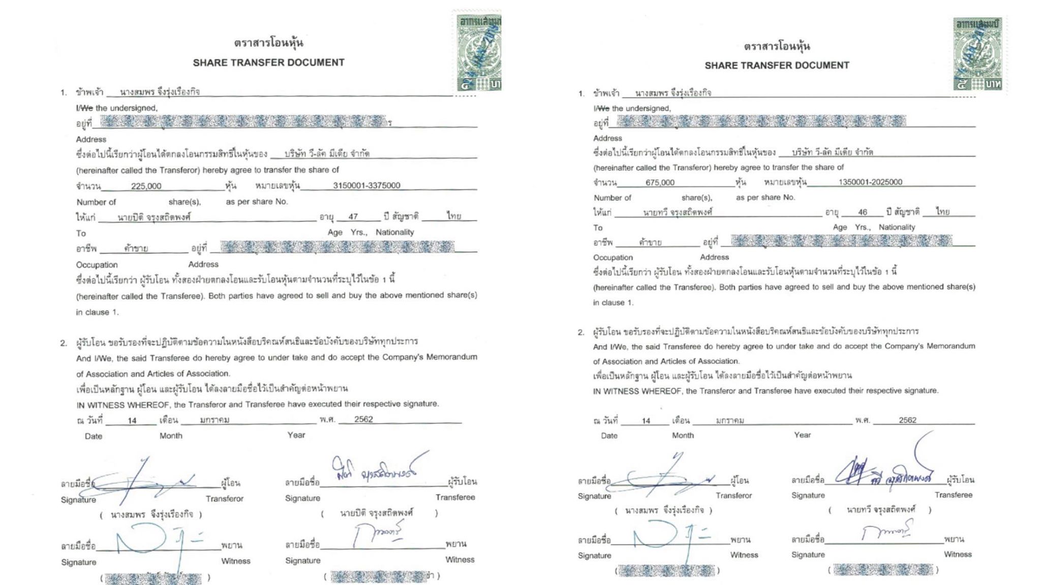 เปิดเอกสารดูชัดๆ ‘ธนาธร-เมีย’ โอนหุ้น ‘วี-ลัค มีเดีย’ 21 มี.ค.2562
