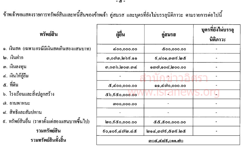 เห็นได้ว่าทรัพย์สินที่มีมูลค่าสูง ได้แก่ เงินลงทุน ที่ดิน และ พระเครื่อง (ของคู่สมรส) ต้องติดตามรายละเอียดและผลคดีกันต่อไป
