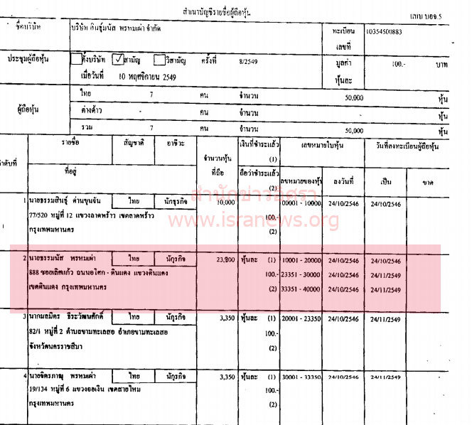 ผู้ถือหุ้นในธุรกิจของ ร.อ.ธรรมนัส มีชื่อถือหุ้นอีกหลายแห่ง