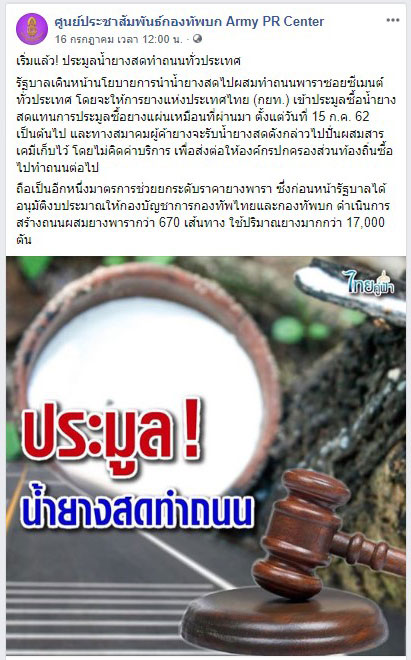 • เปิดแผนงานกองทัพ ใช้งบ 2.5 พันล. ทำถนนยางพารา-ให้กยท.ประมูลก่อนขายต่อ อปท.