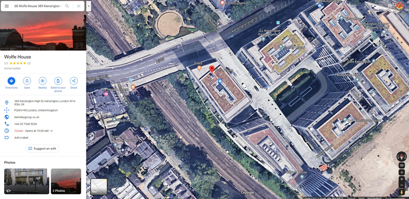 สำนักข่าวอิศรา www.isranews.org ตรวจสอบข้อมูลที่ตั้งดังกล่าวจาก google map พบว่าเป็นอาคารสูงประมาณ 8 ชั้น ดีไซน์ทันสมัย ด้านหน้าติดถนน Kensington High Street ด้านข้างติดทางรถไฟ (ดูภาพประกอบ)