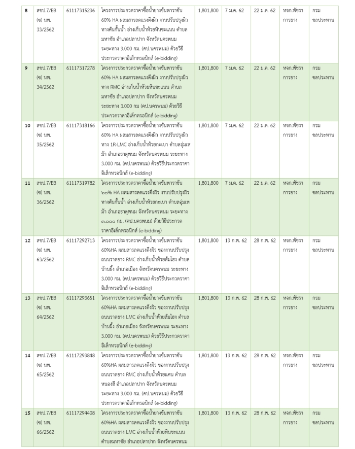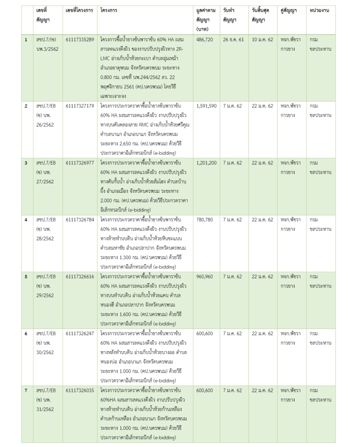 ส่วน สัญญาเลขที่ สชป.7/EB (ซ) นพ.27/2562 ปรากฏรายชื่อ บริษัท ไทย ภัสนันท์ พร๊อพเพอร์ตี้ จำกัด และ หจก.โชคประดิษฐ์ ก่อสร้าง เป็นผู้ผ่านคุณสมบัติและเทคนิคเข้าร่วมเสนอราคาด้วย ก่อนที่ หจก.พัชราการยาง จะชนะการเสนอราคา เช่นกัน