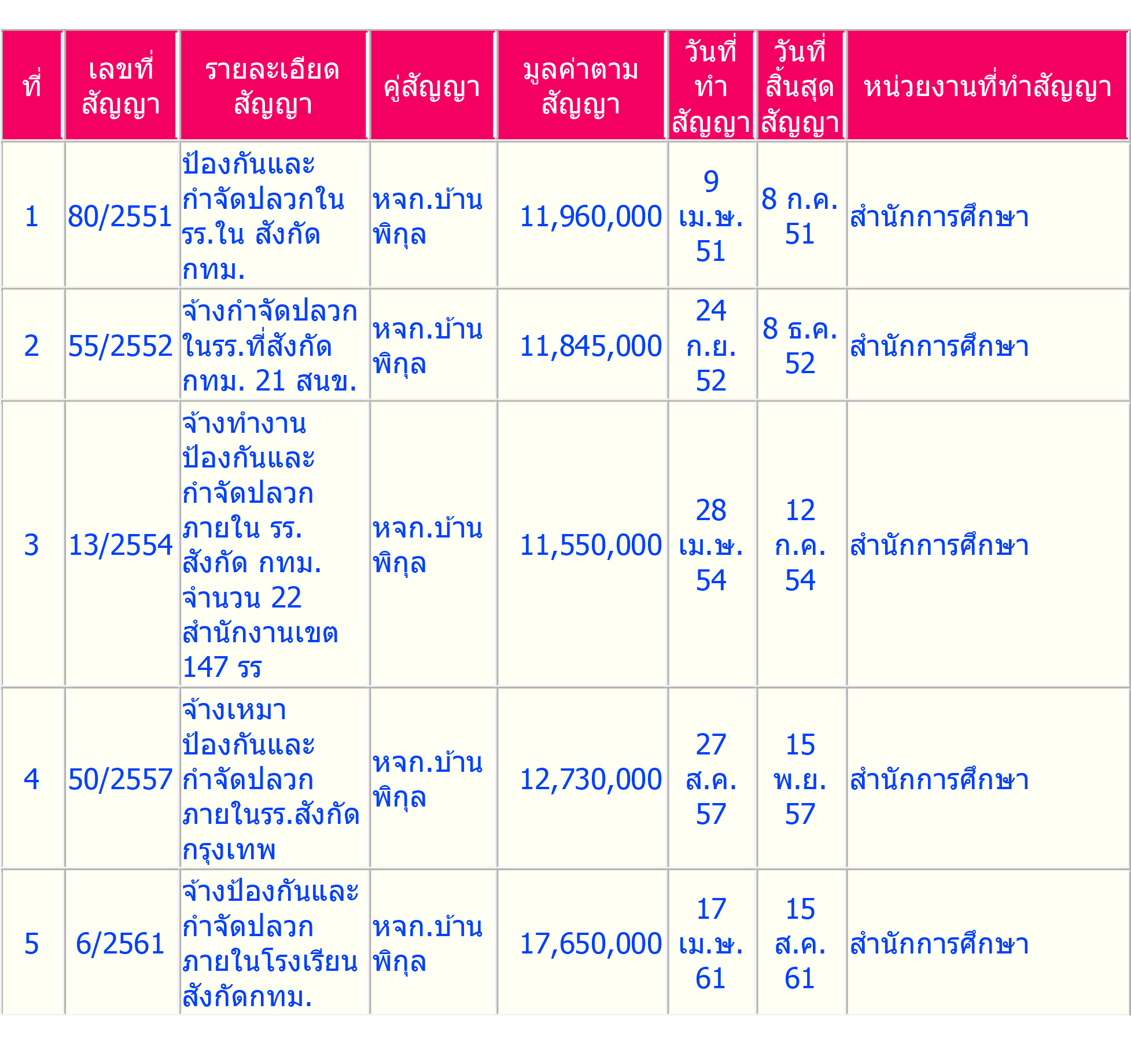 3. หจก.บ้านพิกุล จำนวน 5 สัญญา รวมวงเงิน 65,735,000 บาท
