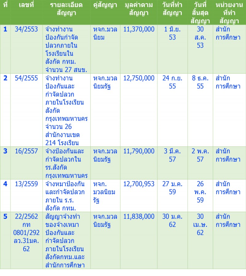 โครงการจ้างรับเหมาป้องกันและกำจัดปลวกภายในโรงเรียนสังกัดกรุงเทพมหานคร ของสำนักการศึกษา กรุงเทพมหานคร (กทม.) กำลังถูกจับตามอง