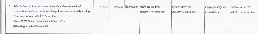 โดยมีการจำหน่ายเรือตามโครงการฯ ให้กับองค์กรปกครองส่วนท้องถิ่นในราคาที่แตกต่างกันถึง 7 ราคา มีราคาจำหน่ายต่ำสุดอยู่ที่ลำละ 72,000 บาท และจำหน่ายในราคาสูงสุดลำละ 79,800 บาท ทั้งที่เป็นการขายเรือที่มีลักษณะเหมือนกันทุกประการให้กับองค์กรปกครองส่วนท้องถิ่นในจังหวัดเดียวกันและจังหวัดใกล้เคียง ที่ไม่ได้มีความแตกต่างในเรื่องระยะทางการขนส่งมากนัก ทั้งนี้ในการดำเนินการจัดซื้อเรือตามโครงการฯ องค์กรปกครองส่วนท้องถิ่นทั้งหมดจะใช้วิธีการเฉพาะเจาะจง โดยจากการตรวจสอบการหาผู้ประกอบการหรือการจัดท้าราคากลางเพื่อจัดซื้อเรือตามโครงการฯ ขององค์กรปกครองส่วนท้องถิ่นจ้านวน 119 แห่ง พบว่า มีองค์กรปกครองส่วนท้องถิ่นจำนวน 50 แห่ง หรือคิดเป็นร้อยละ 42.02 ของจำนวนองค์กรปกครองส่วนท้องถิ่นทั้งหมด มีการหาผู้ประกอบการหรือกำหนดราคากลางจากเอกสารใบเสนอราคาจากผู้ประกอบการเพียงรายเดียว และองค์กรปกครองส่วนท้องถิ่นจ้านวน 69 แห่ง หรือคิดเป็นร้อยละ 57.98 ขององค์กรปกครองส่วนท้องถิ่นทั้งหมด มีการหาผู้ประกอบการหรือกำหนดราคากลางจากใบเสนอราคาของผู้ประกอบการมากกว่า 1 ราย และส่วนใหญ่เป็นผู้ประกอบการกลุ่มเดียวกันที่เสนอราคาให้กับองค์กรปกครองส่วนท้องถิ่นหลายๆ แห่ง โดยมีการเสนอราคาเท่ากับราคากลางหรือต่ำกว่าราคากลางเพียงเล็กน้อย ส่งผลให้องค์กรปกครองส่วนท้องถิ่นในพื้นที่ 6 จังหวัดที่ตรวจสอบ จำนวน 78 แห่งหรือคิดเป็นร้อยละ 65.54 ขององค์กรปกครองส่วนท้องถิ่นทั้งหมด มีการจัดซื้อเรืออยู่ในช่วงราคาลำละ 79,000 ถึง 79,800 บาท ต่ำกว่าราคากลางเพียงเล็กน้อยเท่านั้น