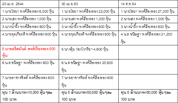 บริษัทรับเหมาที่นายเฮง-นางน้ำผึ้ง พงศ์เรืองรอง ถือหุ้น