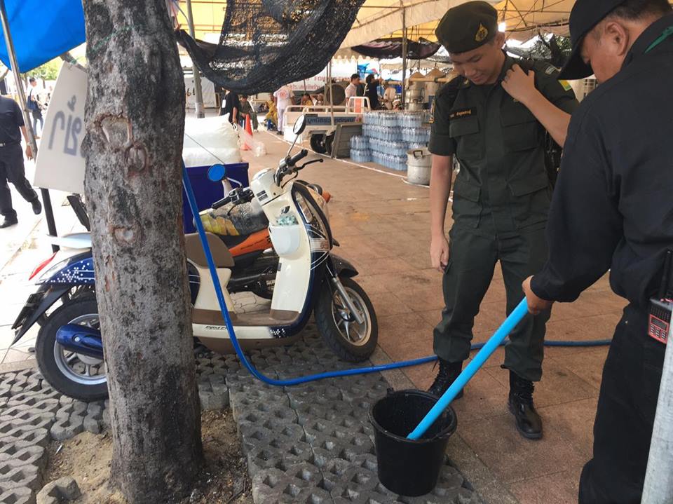 ทั้งนี้ เหล่าจิตอาสาที่มาจะมีหน้าที่ช่วยกันกำจัดเศษขยะจากโคนต้นมะขาม และะดูดน้ำออกจากโคนรากโดยผ่านท่อพีวีซีที่ปักลงไปในดิน