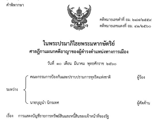 ศาลฎีกาฯ ฟัน 2 นักการเมือง จ.สิงห์บุรี-อุบลฯ ซุกบัญชีทรัพย์สิน