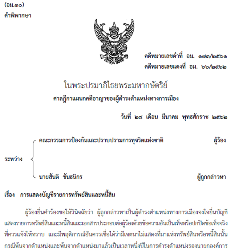 ศาลฎีกาฯฟันนายกเทศมนตรีพรหมบุรี จ.สิงห์บุรี ซุก ป.ป.ช. เงินฝาก 10 ล. ที่ดิน 3 แปลง