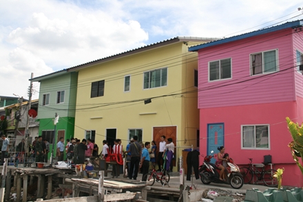 2.ชุมชนสะพานไม้ 2 เขตหลักสี่ จำนวน 206 หลัง ขณะนี้ก่อสร้างเสร็จแล้ว 24 หลัง กำลังก่อสร้าง 74 หลัง และอีก 15 หลังกำลังเตรียมการรื้อย้ายเพื่อสร้างบ้านใหม่