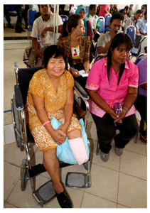 หมอภัททิรา ยังบอกอีกว่า ผู้พิการขาขาดอยู่ในภาวะที่ต้องพึ่งพา ย่อมไม่สะดวกที่จะเดินทางไปโรงพยาบาลเองได้ ยังดีที่ผู้พิการใน จ.นราธิวาส ได้รับความร่วมมือจากหน่วยเฉพาะกิจนราธิวาสคอยอำนวยความสะดวกในเรื่องนำส่งและค้นหา นอกจากนั้นยังได้ประสานกับเครือข่ายองค์กรสาธารณประโยชน์ให้ช่วยนำส่งผู้พิการขาขาดที่ต้องการทำขาเทียมส่งโรงพยาบาลอีกแรงด้วย เพื่อให้ผู้พิการเหล่านี้ไม่เสียโอกาส