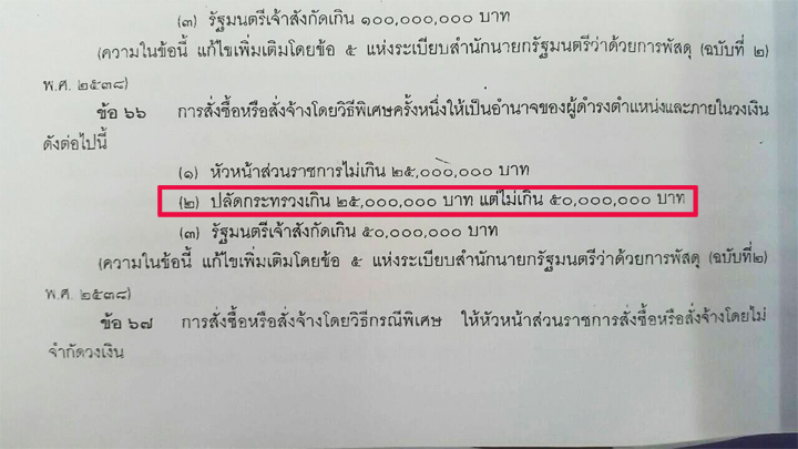 1.หัวหน้าส่วนราชการทั่วไป ไม่เกิน 25 ล้านบาท 2.ปลัดกระทรวง เกิน 25 ล้านบาท แต่ไม่เกิน 50 ล้านบาท และ 3.รัฐมนตรีเจ้าสังกัด เกิน 50 ล้านบาท (ดูเอกสารประกอบ)