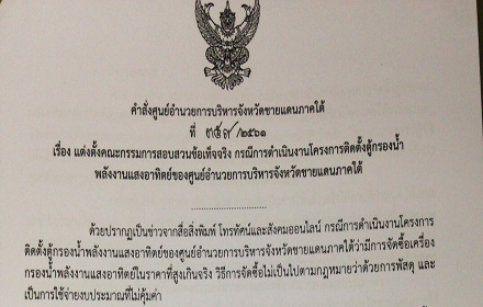 - ตั้งคน ศอ.บต.สอบกันเอง - เปิดโครงการ 2 เทอีก 45 ล้านติดตู้กรองน้ำฯ