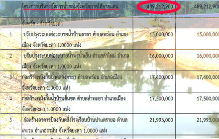"ทีมข่าวอิศรา" ตรวจพบว่า 32 โครงการที่ว่านี้เป็นโครงการที่ขอใช้งบเพิ่มเติมจากทางจังหวัดยะลา ปีงบประมาณ 2560 ในโครงการบริหารจัดการน้ำกลุ่มจังหวัดชายแดนภาคใต้ เฉพาะในส่วนที่ของบเพิ่มเติมมีทั้งสิ้น 32 โครงการ งบประมาณสูงถึง 489 ล้านบาท