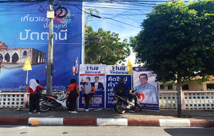 1 พื้นที่เขตเมืองในสามจังหวัดชายแดนภาคใต้เต็มไปด้วยป้ายหาเสียง